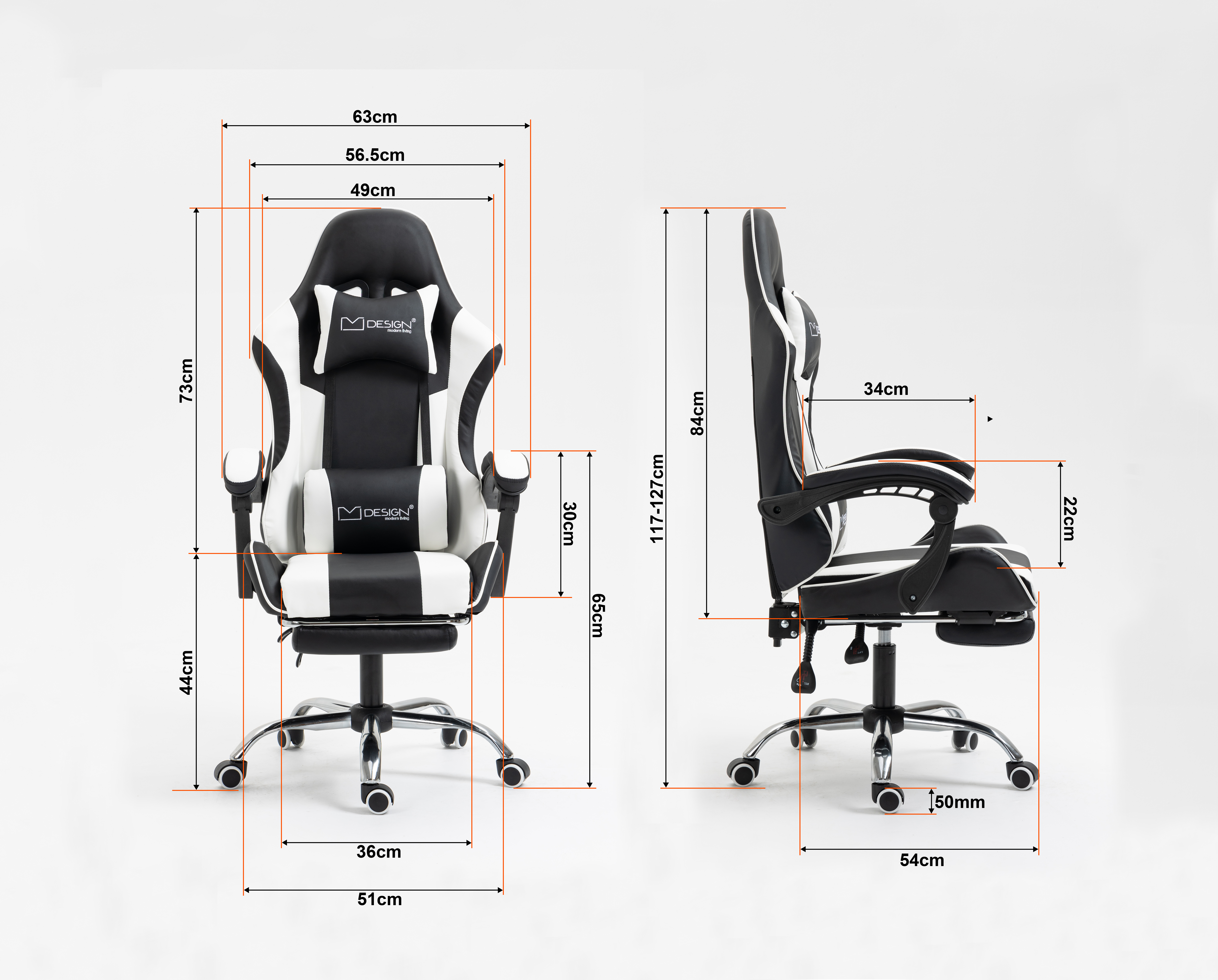 | Wymiary fotela: | Wysokość siedziska: 44,5-54,5 cm |