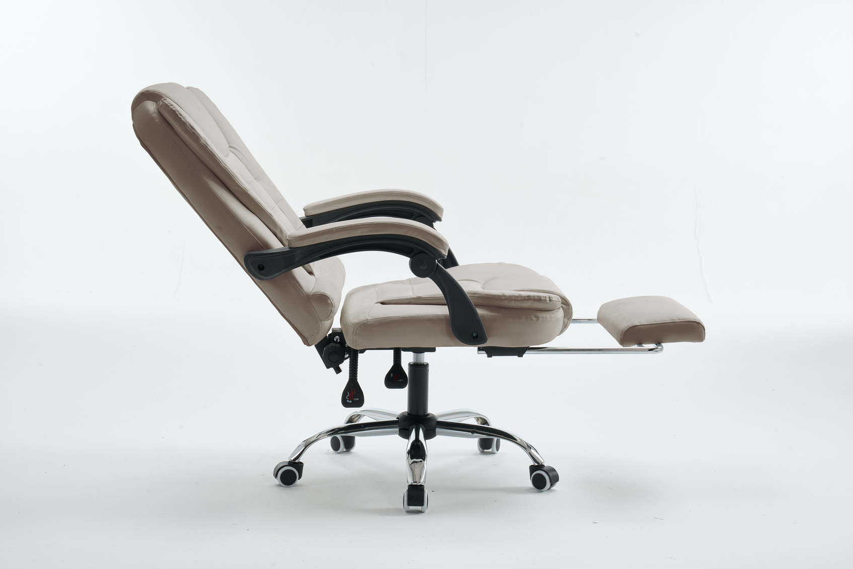 Fotel oferuje możliwość regulacji wysokości i odchylenia oparcia, co pozwala na dostosowanie pozycji do własnych preferencji. Kółka z PU o średnicy 60 mm gwarantują stabilność i płynność ruchu, a wbudowany podnóżek dodaje dodatkowego komfortu podczas długich godzin spędzonych przy biurku.