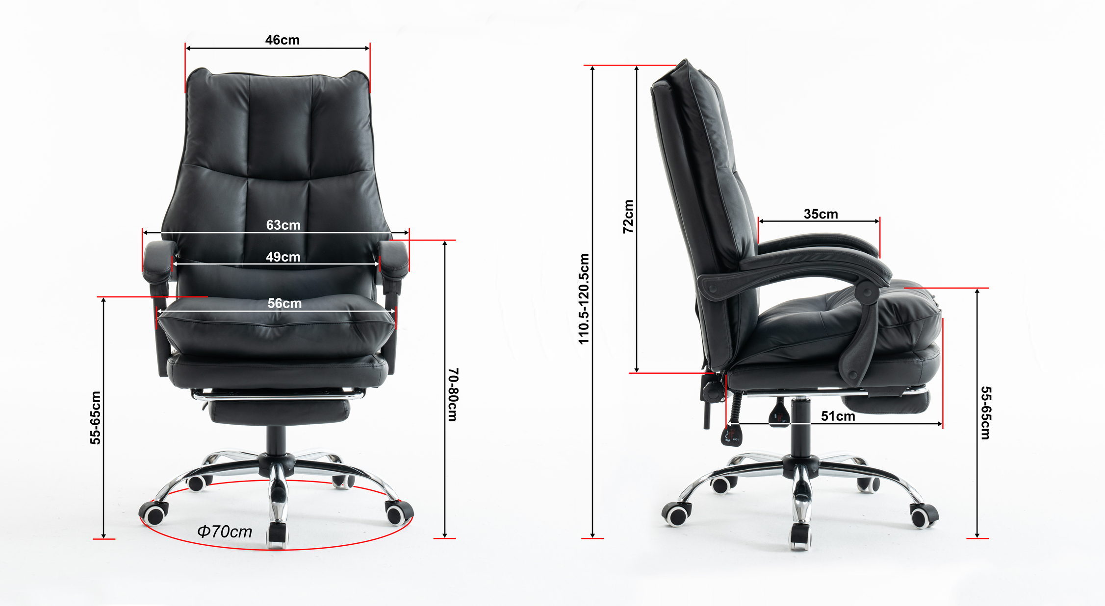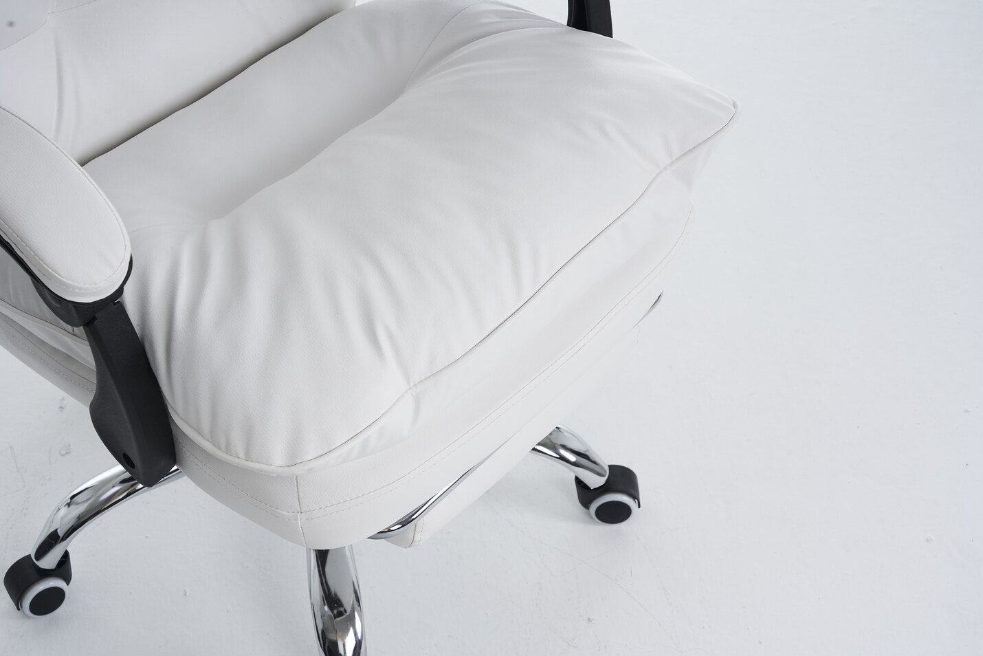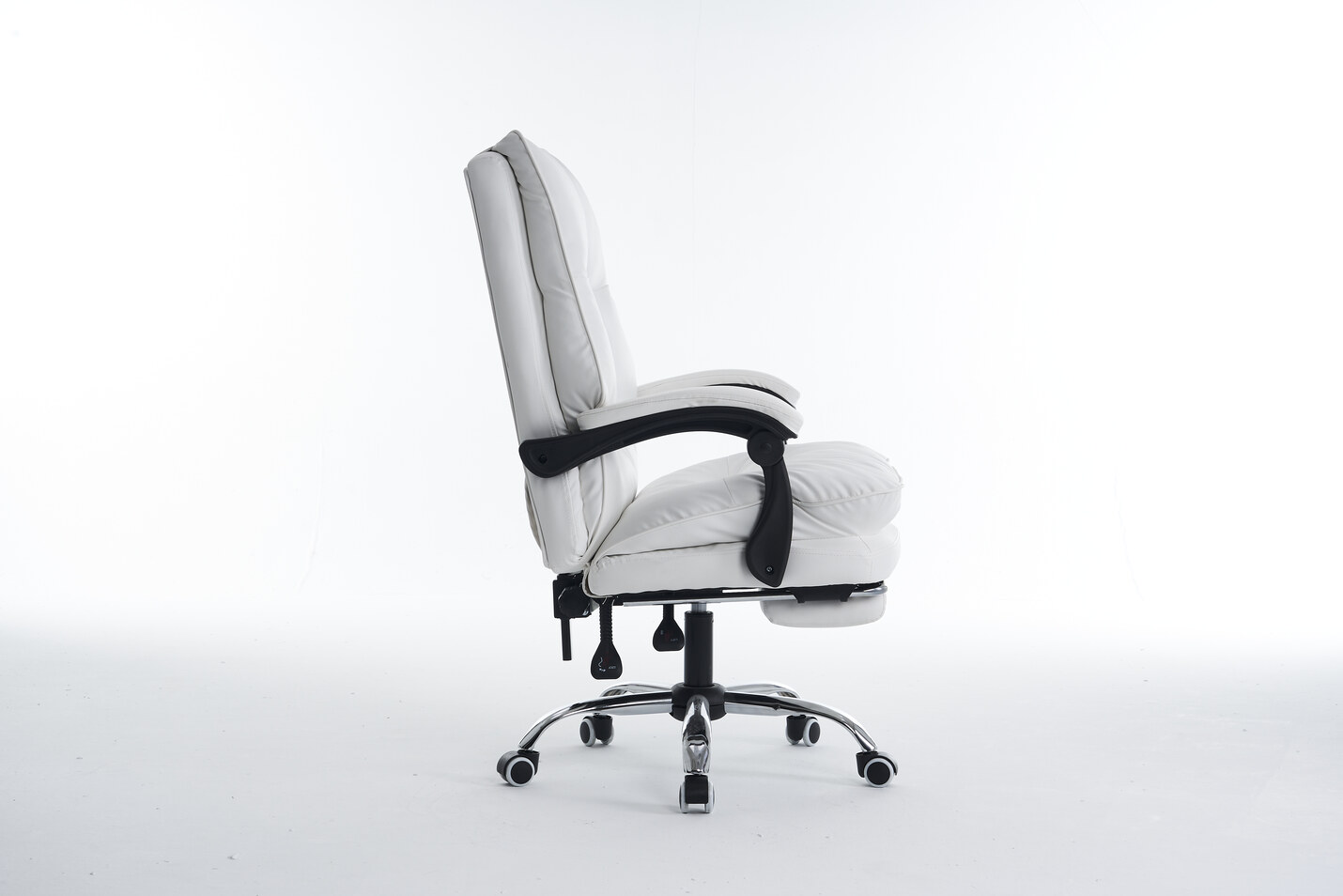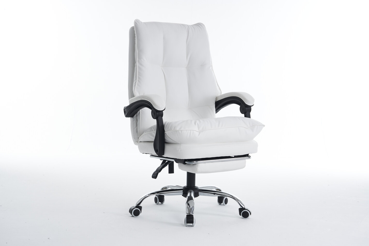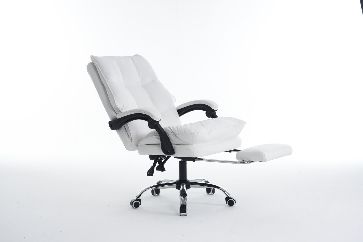 Fotel oferuje możliwość regulacji wysokości i odchylenia oparcia, co pozwala na dostosowanie pozycji do własnych preferencji. Kółka z PU o średnicy 60 mm gwarantują stabilność i płynność ruchu, a wbudowany podnóżek dodaje dodatkowego komfortu podczas długich godzin spędzonych przy biurku.