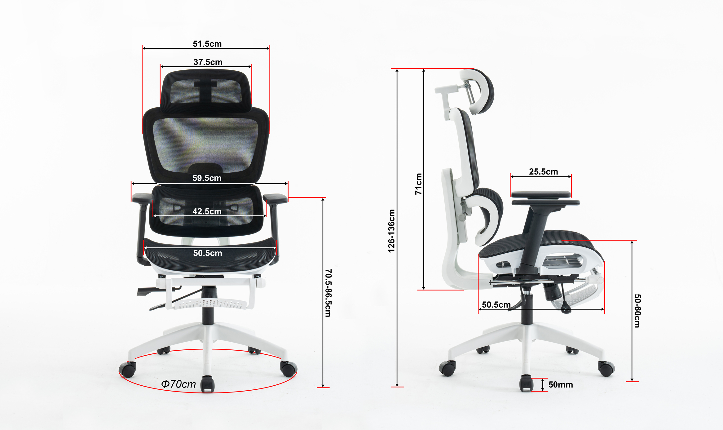 | Wymiary krzesła: | Zakres wysokości siedziska: 45-55 cm |